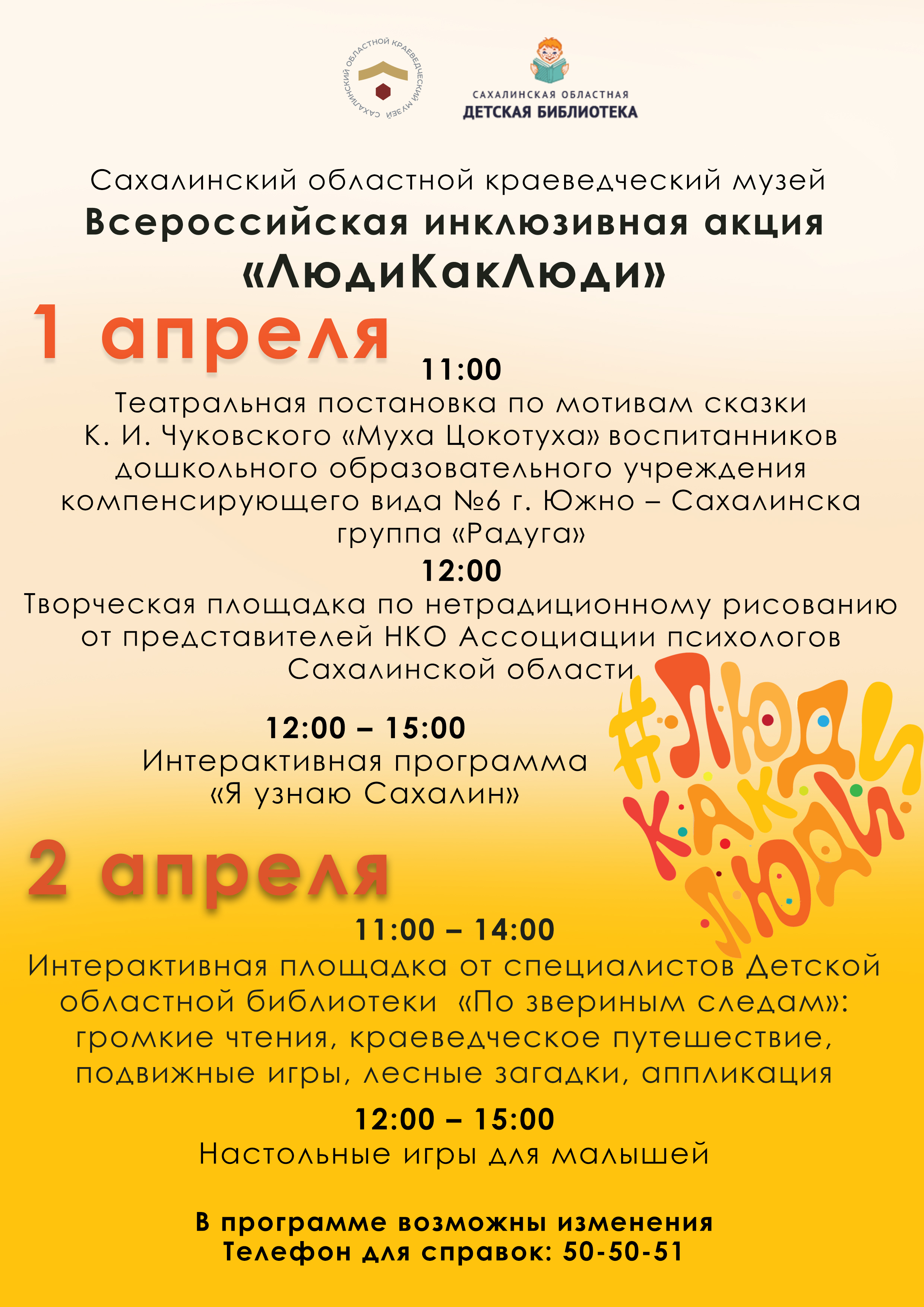 Сахалинский областной краеведческий музей присоединяется к акции и приглашает принять участие в мероприятиях, посвященных теме инклюзии.