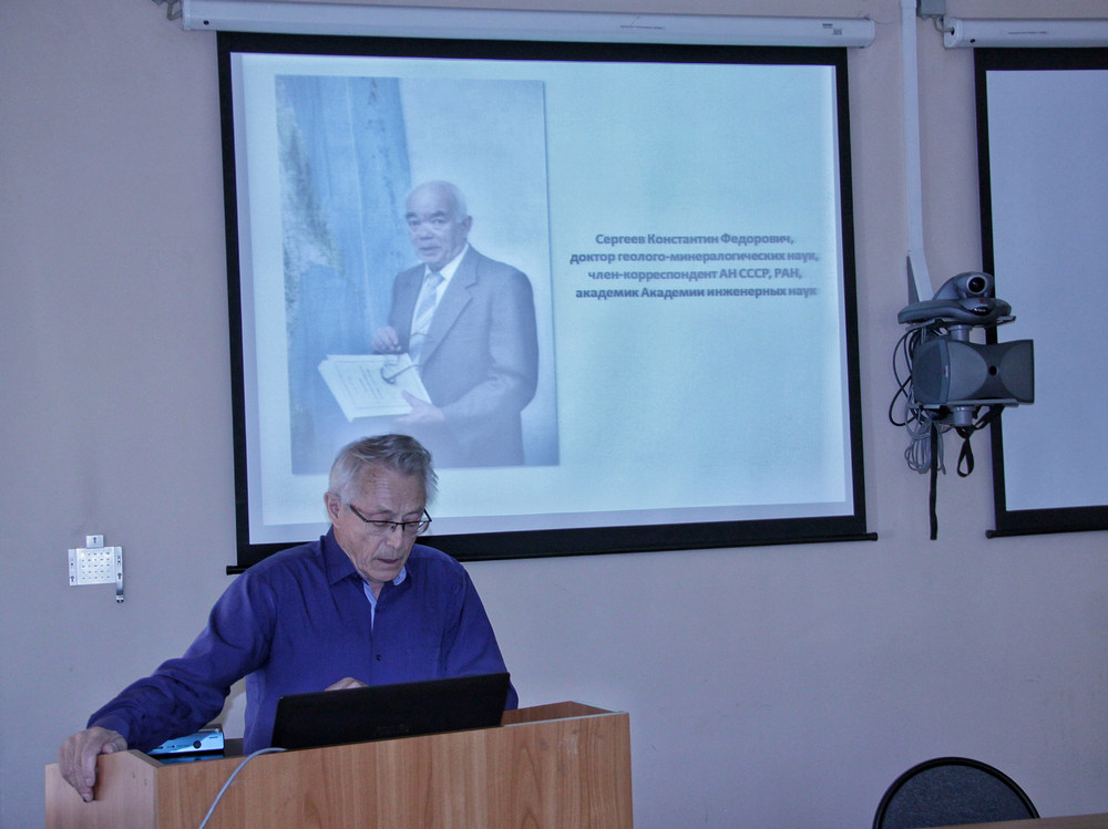 Дальнейшее повествование было посвящено эпохе, когда Институтом руководил К.Ф. Сергеев. Доклад «Геолог и теоретик механики Сергеев Константин Федорович (25.07.1931-20.04.2010)» представил ветеран Института, прямой свидетель описанных событий, кандидат геолого-минералогических наук О.В. Веселов. Его доклад затрагивал как и славнейшую эпоху развития Института, когда активно проводились морские геолого-геофизические исследования – 70-е – первая половина 80-х годов, так и наиболее сложный этап «выживания» учреждения – вторая половина 80-х – 90-е годы.