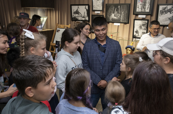 «Мне очень нравится, что эта выставка самобытная, и художник выступает за сохранение национальной культуры», – поделилась Евгения Ямакава, педагог творческой мастерской Дворца детского творчества. На открытие она пришла вместе с учениками: «Когда есть что-то стоящее, я стараюсь по возможности подключать детей, чтобы они увидели живую реализацию и талант человека. Особенно, когда у него лично можно узнать о реальных вещах, о его опыте и художественном пути».