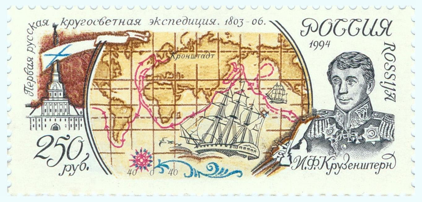 Иван Федорович внес огромный вклад в развитие географии и мореплавания в Российской империи. В августе этого года исполнилось 220 лет с начала первой русской кругосветной экспедиции под его руководством (1803-1806 годы), ознаменовавшей выход российского флота на просторы мирового океана. Путь кораблей экспедиции «Надежды» и «Невы» пролегал из Кронштадта через Атлантический океан, мыс Горн, Тихий океан, Гавайские острова, Камчатку, Сахалин, Курилы, Японию и Аляску. Одна из задач экспедиции заключалась в описании Сахалина и Курильских островов. Капитан-лейтенанту Крузенштерну и участникам экспедиции удалось собрать уникальные сведения об островной флоре и фауне, получить представление о традициях, религии и быте местных жителей. Они сделали опись Курильской гряды от мыса Лопатка до о. Расшуа и составили карты, на которых впервые правильно отображалась общая конфигурация острова Сахалин. Ценные картографические материалы, полученные по результатам экспедиции, в течение нескольких последующих десятилетий служили руководством для мореплавателей.