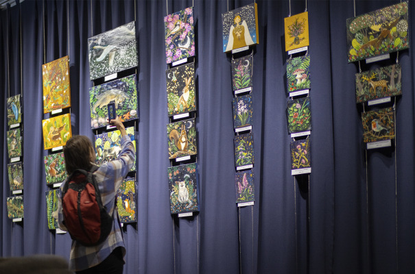 Екатерина Завалишина – джазовая певица, автор и иллюстратор книг для детей, Женщина года в номинации «Культура и духовность», прекрасная мама и талантливый художник. Она никогда не останавливается в поисках и не ограничивает себя рамками и условностями. Серия картин, представленная на выставке, была вдохновлена сказками, воспоминаниями из детства, народным творчеством… они воплощают квинтэссенцию чувств автора из самых потаенных уголков души. Сама Екатерина разделяет работы по темам: волшебный лес, волшебный сад и волшебный океан, который появился в этом году: