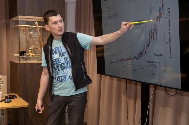 Изучением поведения таких опасных соседей занимаются вулканологи. О своей профессии на нашем традиционном лектории рассказал Артем Дегтерев, ведущий научный сотрудник, руководитель лаборатории вулканологии и вулканоопасности ИМГиГ ДВО РАН, кандидат геолого-минералогических наук.