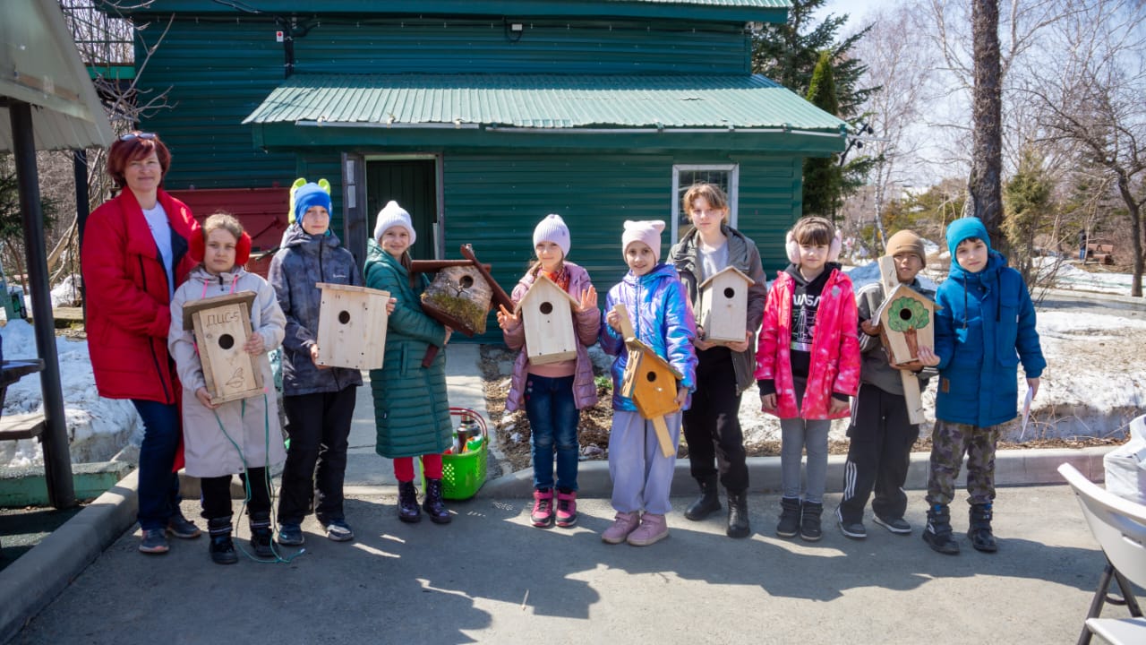 Работники Сахалинского центра организации работы железнодорожных станций создали своими руками домики для птиц, которые было решено отдать в создаваемую аллею скворечников в Сахалинском ботаническом саду. На мероприятие пришли семьи не только работников центра и их знакомые, но и семьи участников СВО и общеобразовательной школы №5, что, несомненно, говорит о его значимости. Так, благодаря проведенным мастер-классам семьи смогли узнать много интересного о птицах, разгадать кроссворды, собрать паззлы, поиграть в птичьи классики и не только. И, конечно, сделать то, зачем пришли – повесить скворечники с помощью научного сотрудника Сахалинского ботанического сада В.В. Шейко