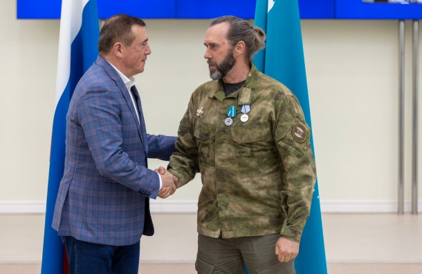 13 мая в здании правительства Сахалинской области состоялось награждение нашего коллеги и участника боевых действий СВО Бренцана Олега Борисовича. За личный вклад в достижении целей специальной военной операции на территории Украины, подготовку мобилизованных военнослужащих, добровольцев, личного состава ВС РФ, сотрудников силовых структур и ведомств, гражданского населения в составе группы инструкторов социального проекта «Школа тактической медицины» был награжден губернатором Валерием Игоревичем Лимаренко медалью «Сахалинская область – фронту» IV степени.
