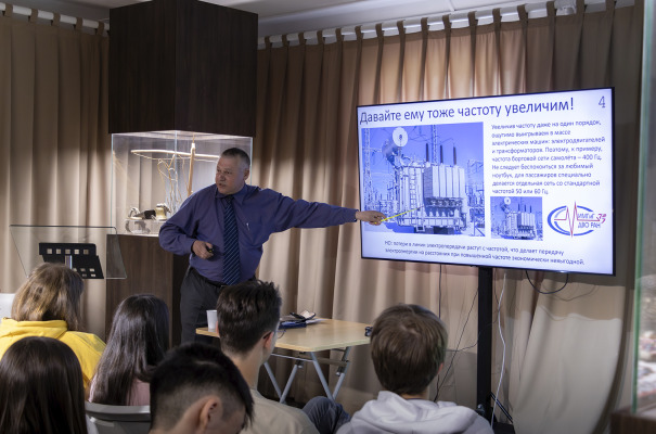 Он познакомил слушателей с историей изобретения электродвигателя переменного тока, современными системами электроснабжения и работой, которую сейчас проводит Институт морской геологии и геофизики ДВО РАН. Мероприятие посетили студенты Сахалинского Промышленно-экономического техникума и Сахалинского техникума сервиса.