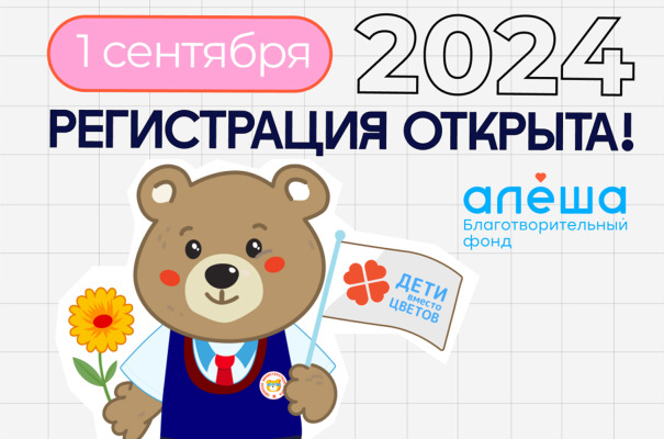 1 сентября масштабная благотворительная акция «Дети вместо цветов» пройдет уже в 11-й раз! В 2023 году вместе с Фондом «Алеша» в благотворительной акции приняли участие: 1400 школ из 610 городов и сел России. Благодаря собранным в ходе акции средствам, удалось помочь определить точный диагноз Далиле Левичевой, провести малоинвазивную операцию по удалению кисты холедоха и подготовить девочку к трансплантации костного мозга, которая будет проведена по протоколу лечения!