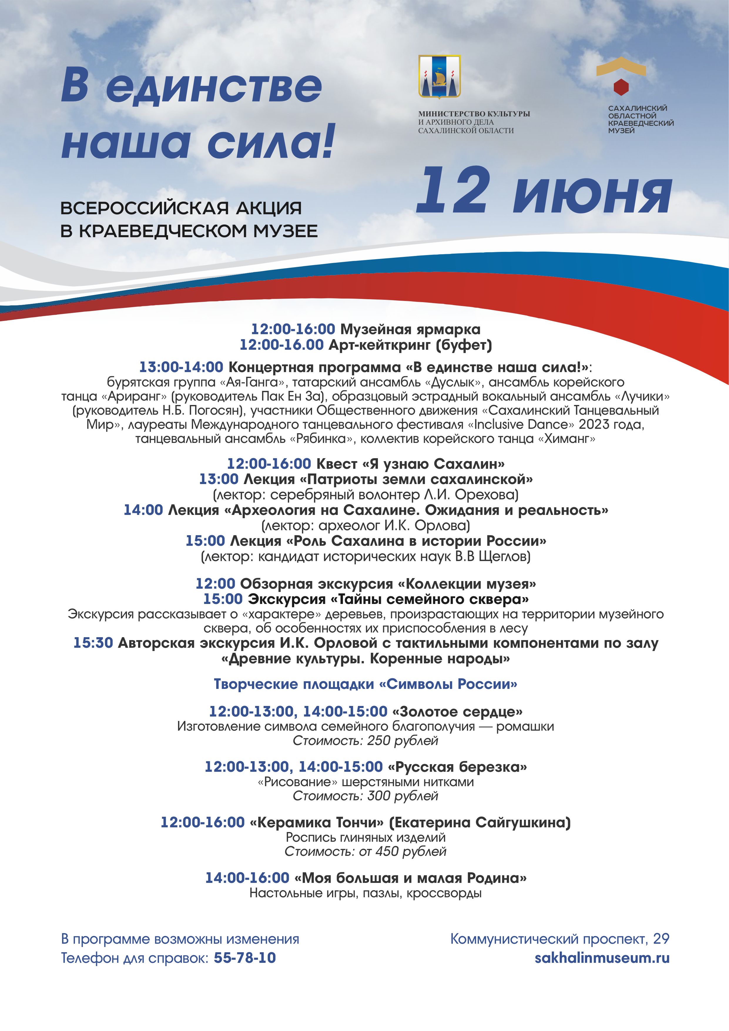 12 июня вход в музей бесплатный, все дополнительные услуги (экскурсии, мастер-классы, лекции) оплачиваются по прейскуранту.