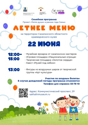 22 июня с 13:00 до 16:00 вас ждет увлекательная семейная программа «Летнее меню». Участие по входным билетам.