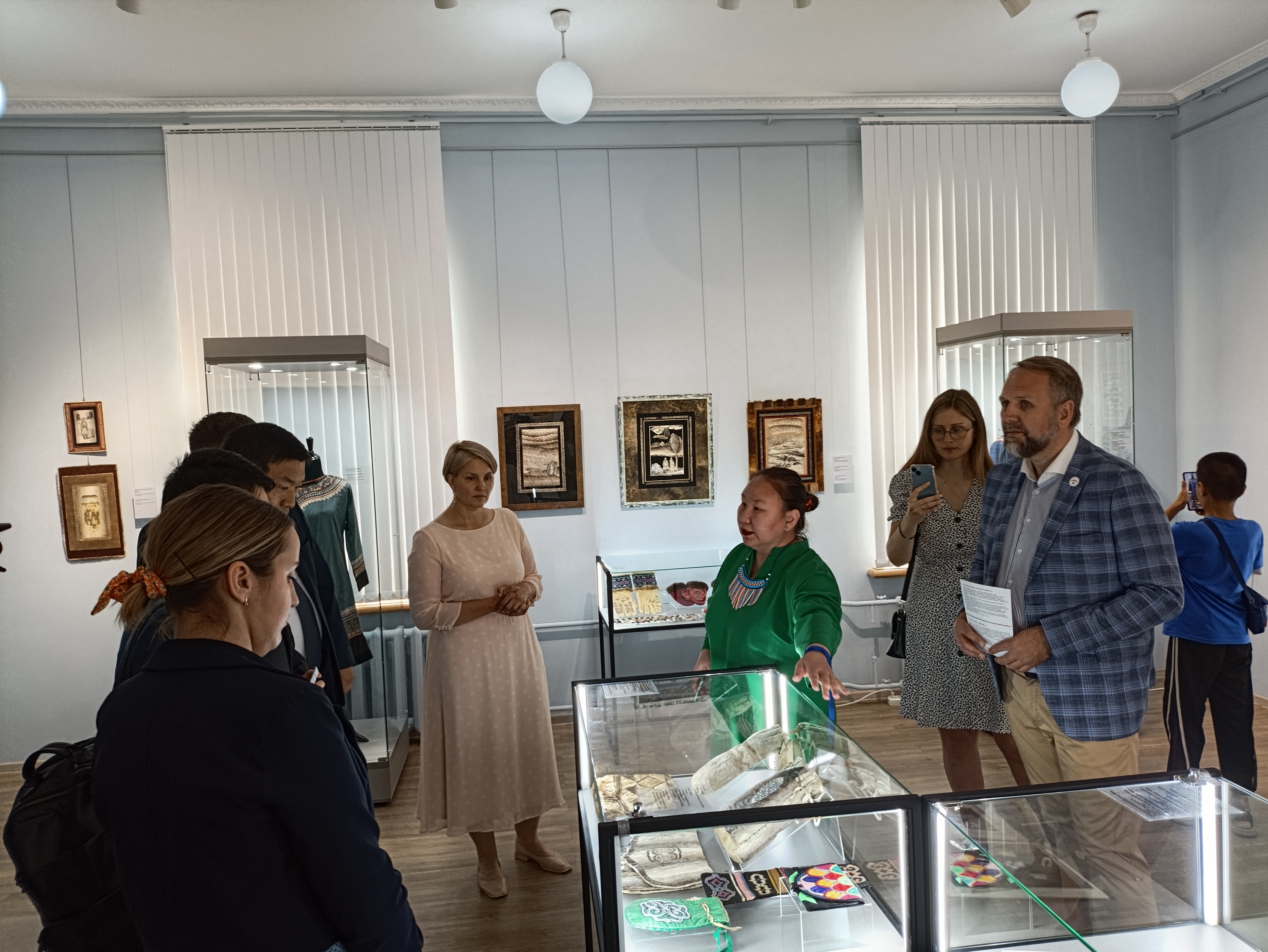 30 августа 2024 года в рамках работы выставки сотрудники Сахалинского областного краеведческого музея О.Ф. Соловьёва и Н.А. Глушкова провели мастер-классы по технике нанесения орнамента на национальный нивхский халат для посетителей Амурского краеведческого музея.