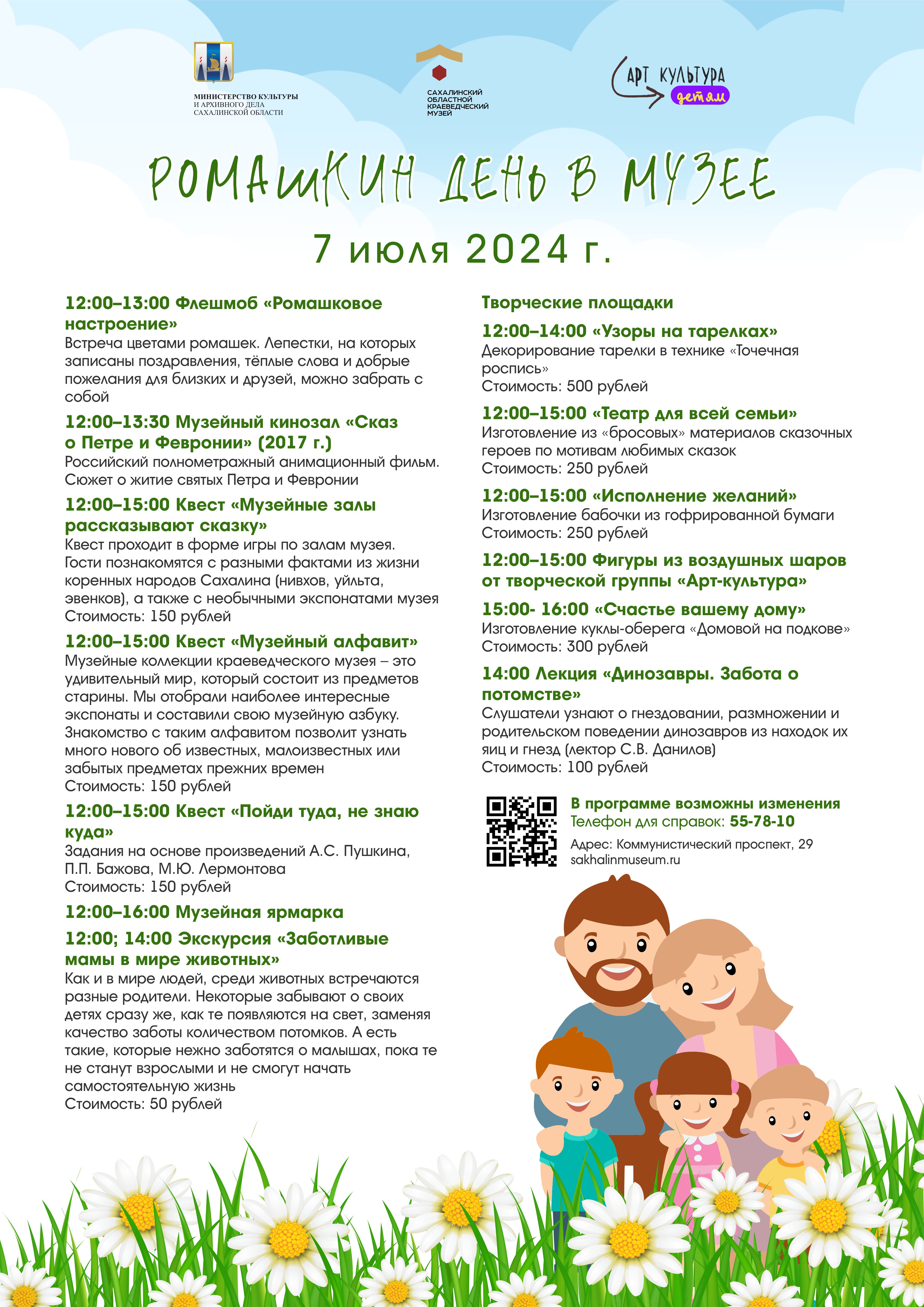 В преддверии Дня семьи, любви и верности, 7 июля в Сахалинском областном краеведческом музее пройдет Акция. Приглашаем гостей на тематические мероприятия.