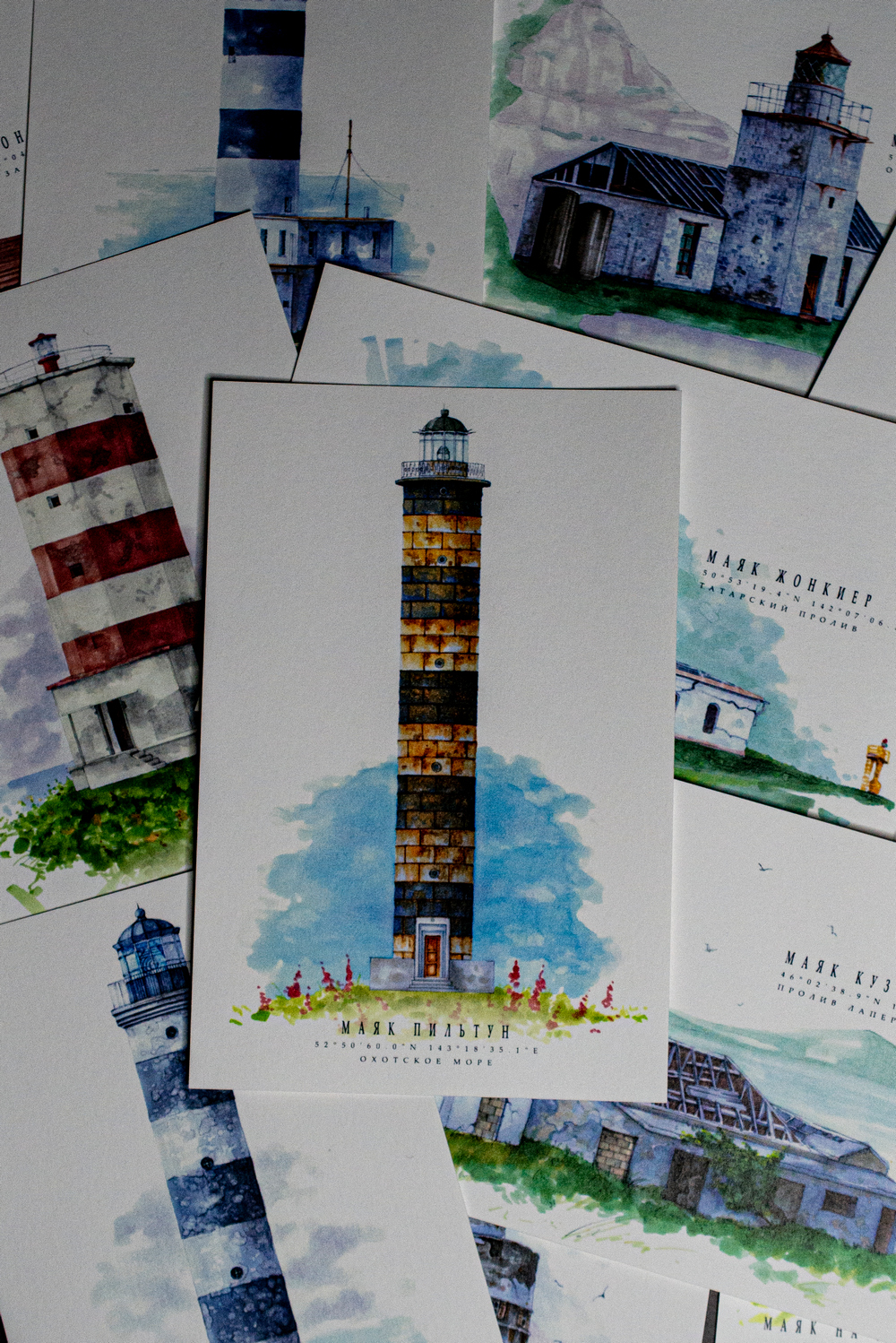 Мы продолжаем рассказывать о наборе почтовых открыток «Маяки Сахалина». Напомним, что набор был изготовлен и поступил в музей в 2021 году. В нем 12 открыток. Они были выполнены семейной парой Эмилией и Никитой Красновыми, жителями Санкт-Петербурга, которые любят путешествовать по разным маякам России и называют себя МаякоМаньяками.