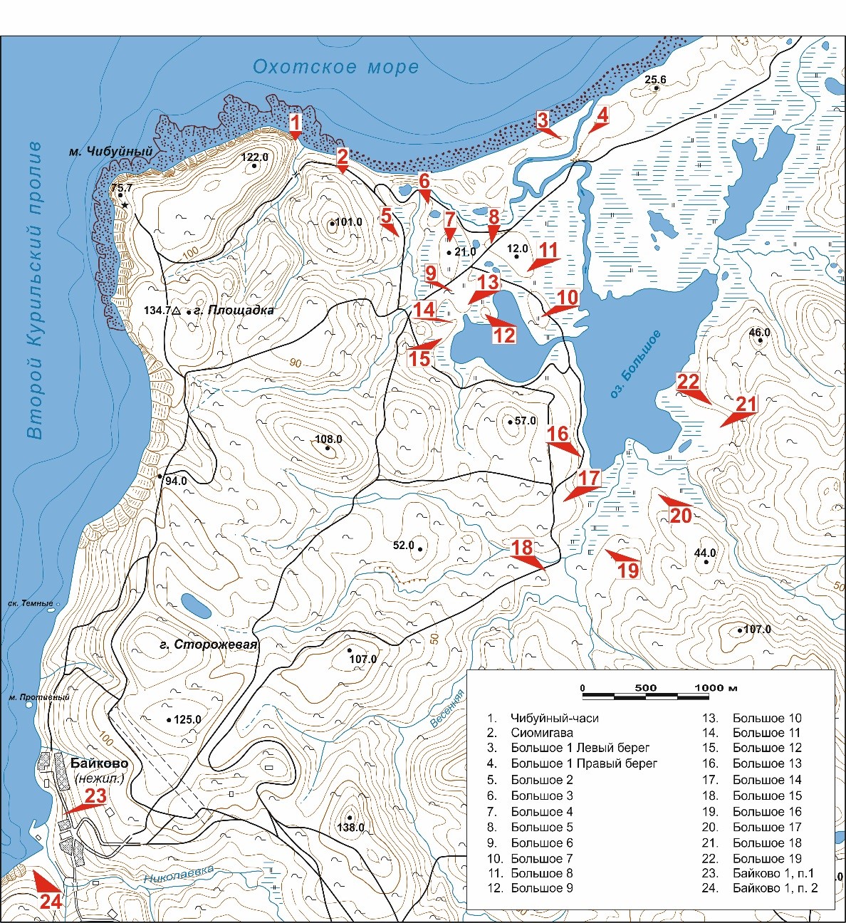 2. Обследование известных стоянок и поселений древнего человека на Курильских островах с целью проверки современного состояния и получения данных для подготовки учётной документации.