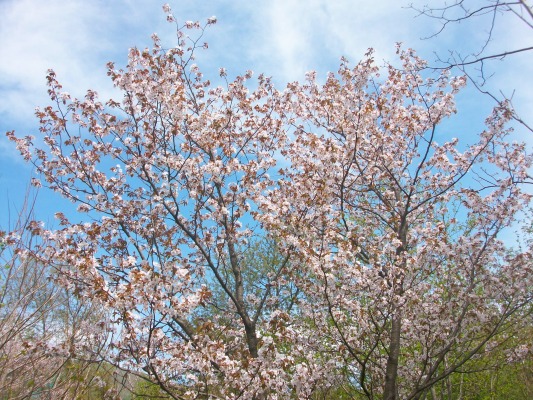 Исключительно декоративна в период цветения. Крупные цветки розовым облаком окутывают дерево. Темно-розовые прицветники и полуразвернутые пурпурные листья великолепно гармонируют с нежно-розовыми цветками.