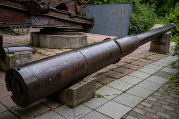 Использовалось при обороне русской крепости Порт-Артур во время Русско-японской войны 1904-1905 гг. Ствол 152-мм пушки длиной 45 калибров был изготовлен в Санкт-Петербурге на Обуховском сталелитейном заводе в 1901 году. На казенной части имеется аббревиатура «М.А.» (морская артиллерия). Рядом имеется две иероглифические надписи: «В память о войне 37-38 годов Мейдзи (1904-1905 гг.) и «Почтительно писал адмирал барон Катаока Ситиро». В годы Русско-японской войны адмирал Катаока командовал третьей флотилией объединенного флота, а летом 1905 года руководил объединенной Северной флотилией, участвовавшей в захвате острова Сахалин.