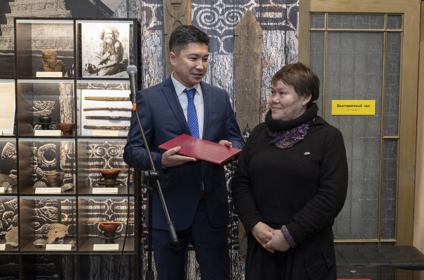«Почетная грамота за высокие достижения в профессиональной музейной деятельности, сохранение традиций и культуры уйльта, одного из самых малочисленных народов Севера, уникальное мастерство, владение и развитие техники художественного творчества коренных этносов, активную научно-просветительскую работу, передачу подрастающему поколению основ традиционных промыслов и секретов изготовления предметов культуры и быта исчезающих народностей, активное участие в социально-значимых культурных мероприятиях, профессионализм и ответственность».
