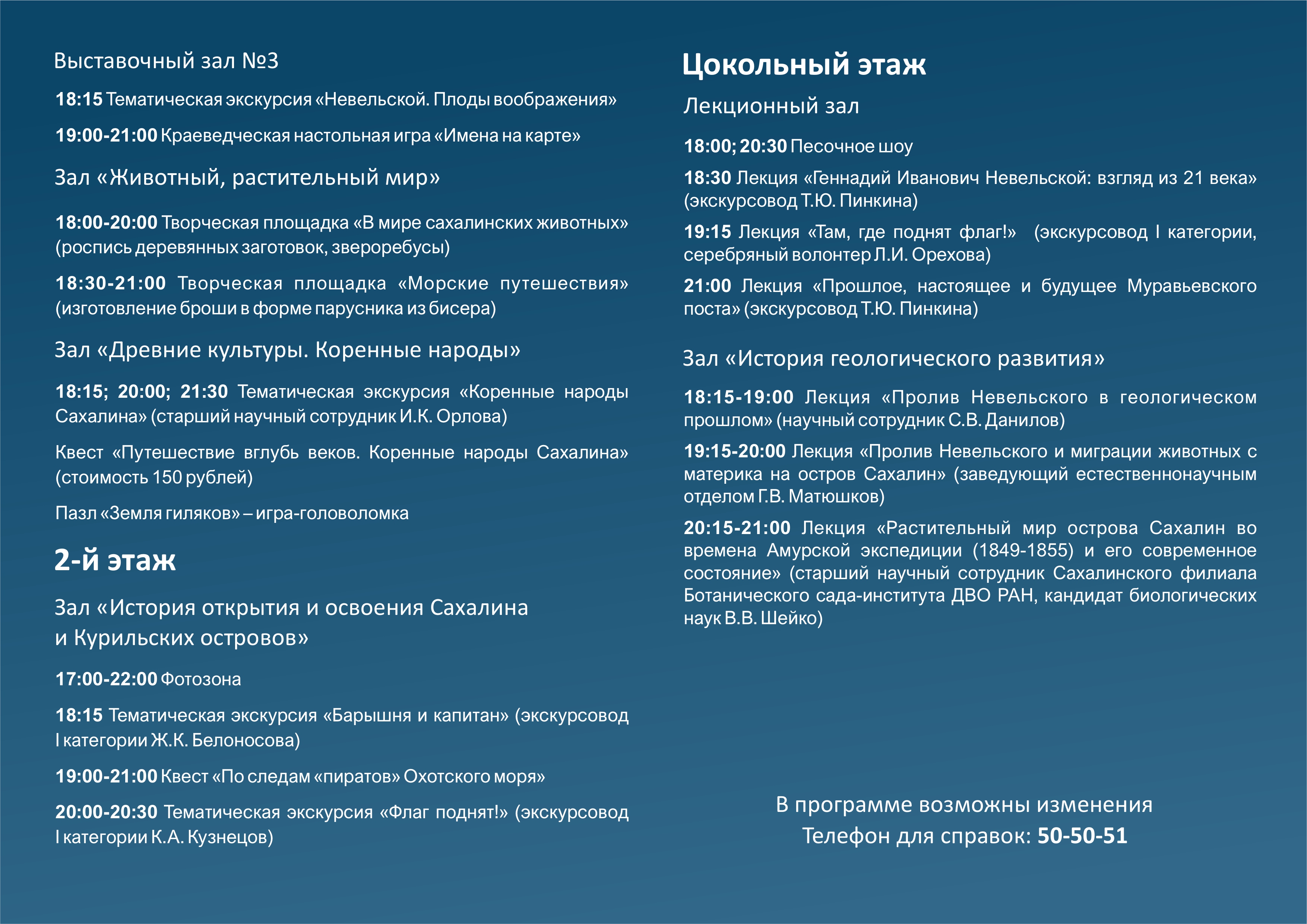Мы подготовили лекции, тематические экскурсии, мастер-классы для аудитории всех возрастов. Подробная программа представлена в афише, а узнать о мероприятиях других учреждений Вы можете на портале «Культура.РФ».